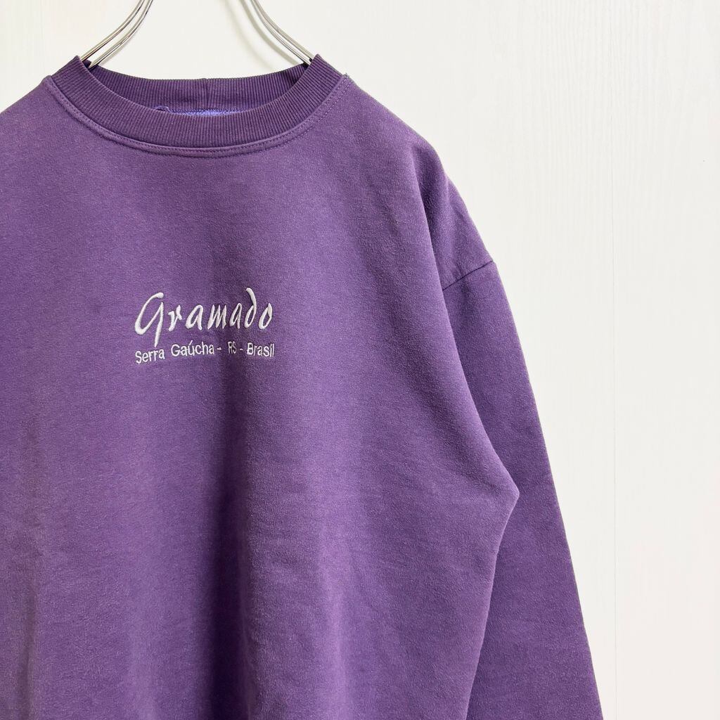 古着 used gramado 長袖刺繍スウェット トレーナー レトロデザイン 厚めボディ 紫 パープル