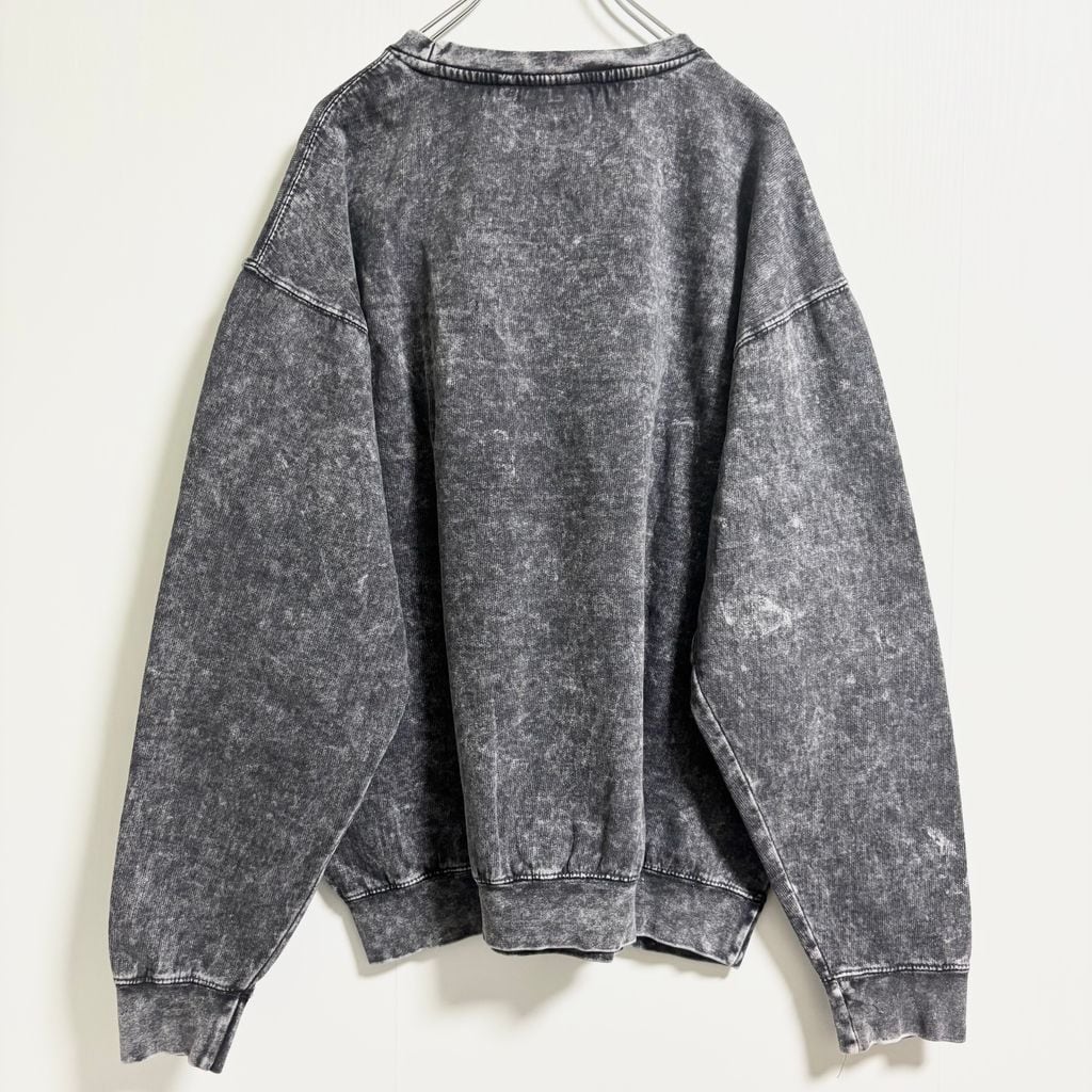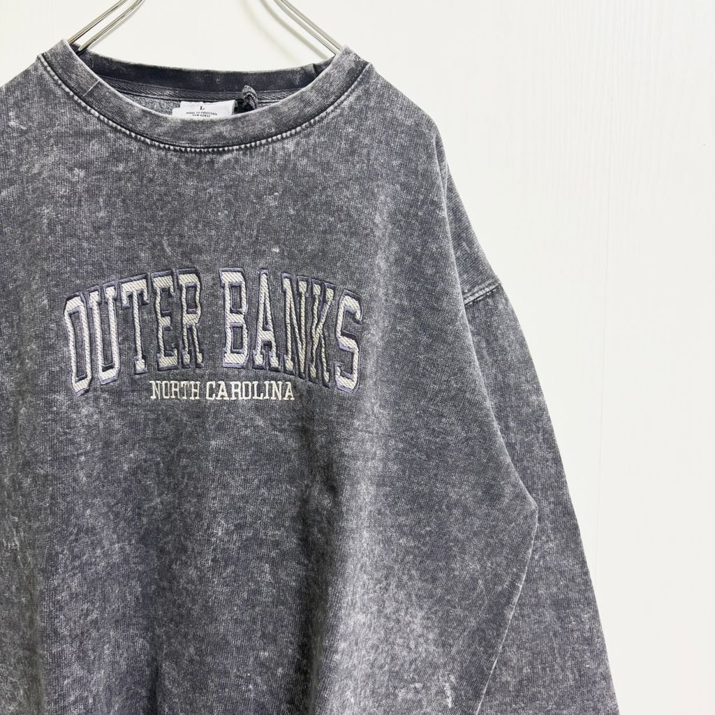 古着 used OUTER BANK 長袖刺繍スウェット トレーナー ウォッシュ加工 レトロデザイン グレー Lサイズ