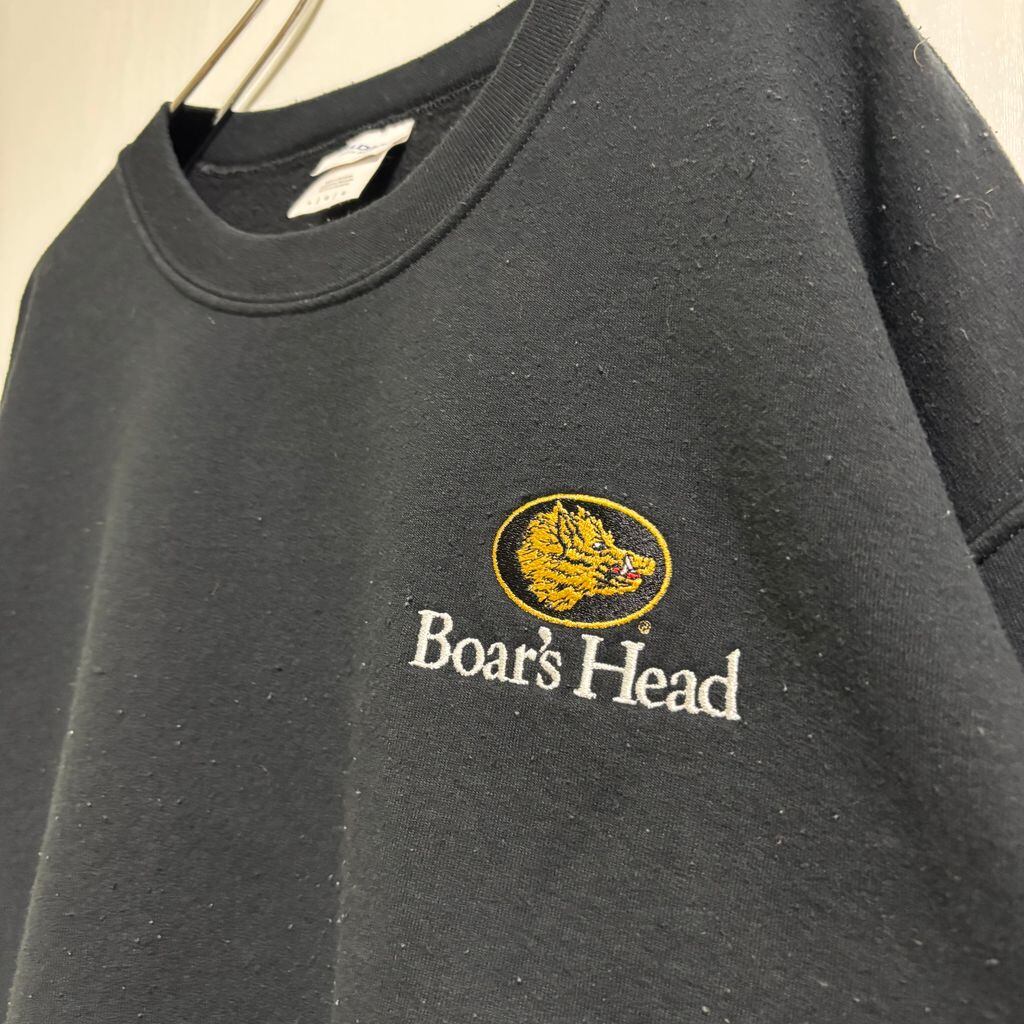 古着 used GILDAN ギルダン 長袖ワンポイント刺繍スウェット トレーナー ノームコア レトロデザイン 黒 ブラック