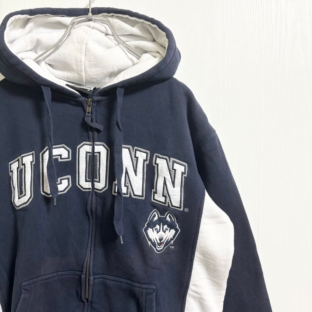 古着 used colosseum athletics 長袖フルジップ刺繍パーカー UCONN コネチカット大学 Sサイズ