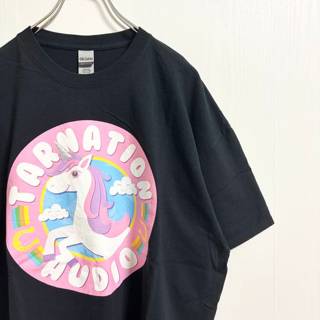 古着 used GILDAN ギルダン 半袖プリントTシャツ 馬 アニマル柄 レトロデザイン クルーネック 黒 ブラック 2XL