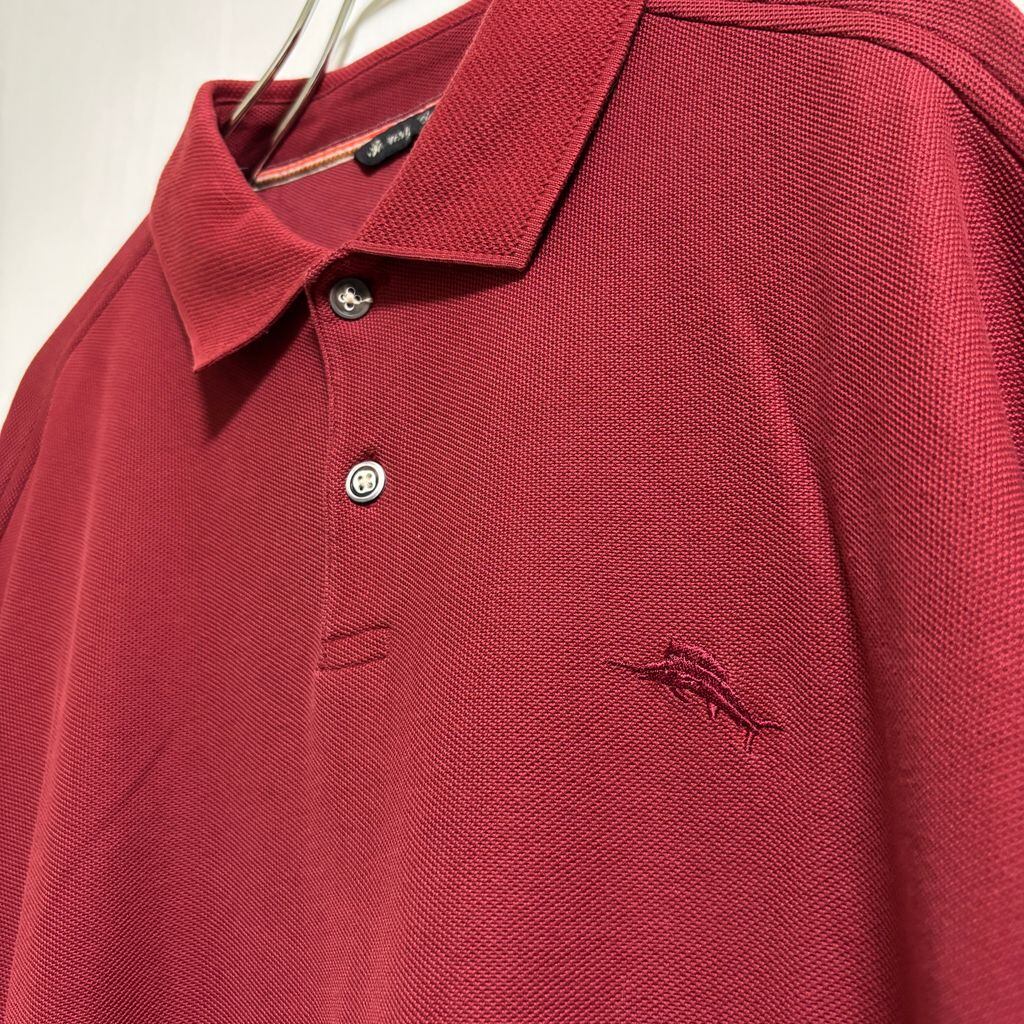 古着 used 半袖ポロシャツ ワンポイントロゴ刺繍 カジキマグロ ワインレッド えんじ色 レトロデザイン XLサイズ