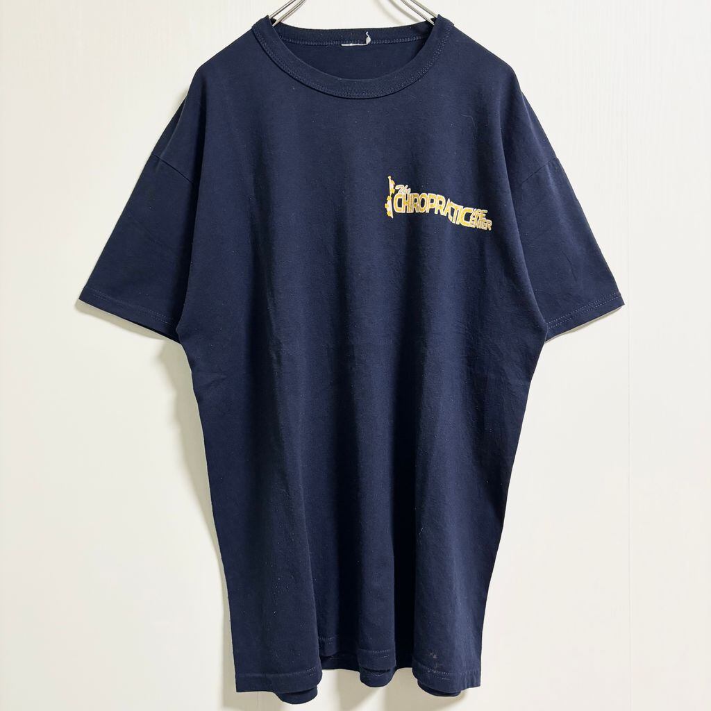 古着 used 半袖ワンポイントTシャツ バックプリント クルーネック レトロデザイン ネイビー 紺