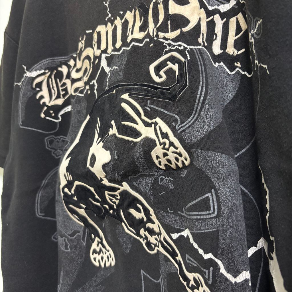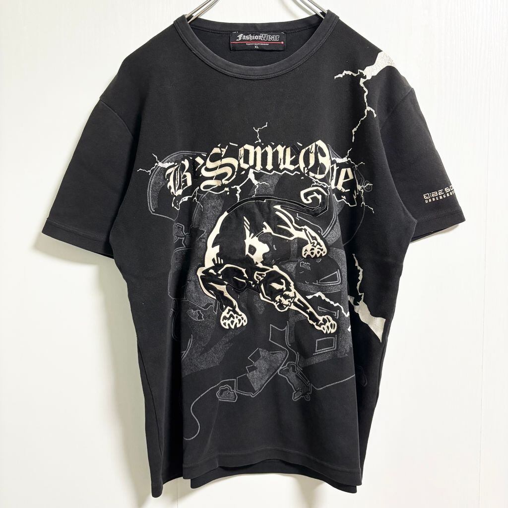 古着 used 半袖凹凸プリントTシャツ レトロデザイン クルーネック y2k 黒 ブラック 個性的 XLサイズ