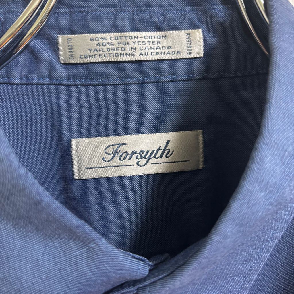 古着 used 半袖ワークシャツ ワンポイント刺繍 ネイビー レトロデザイン シンプル Sサイズ