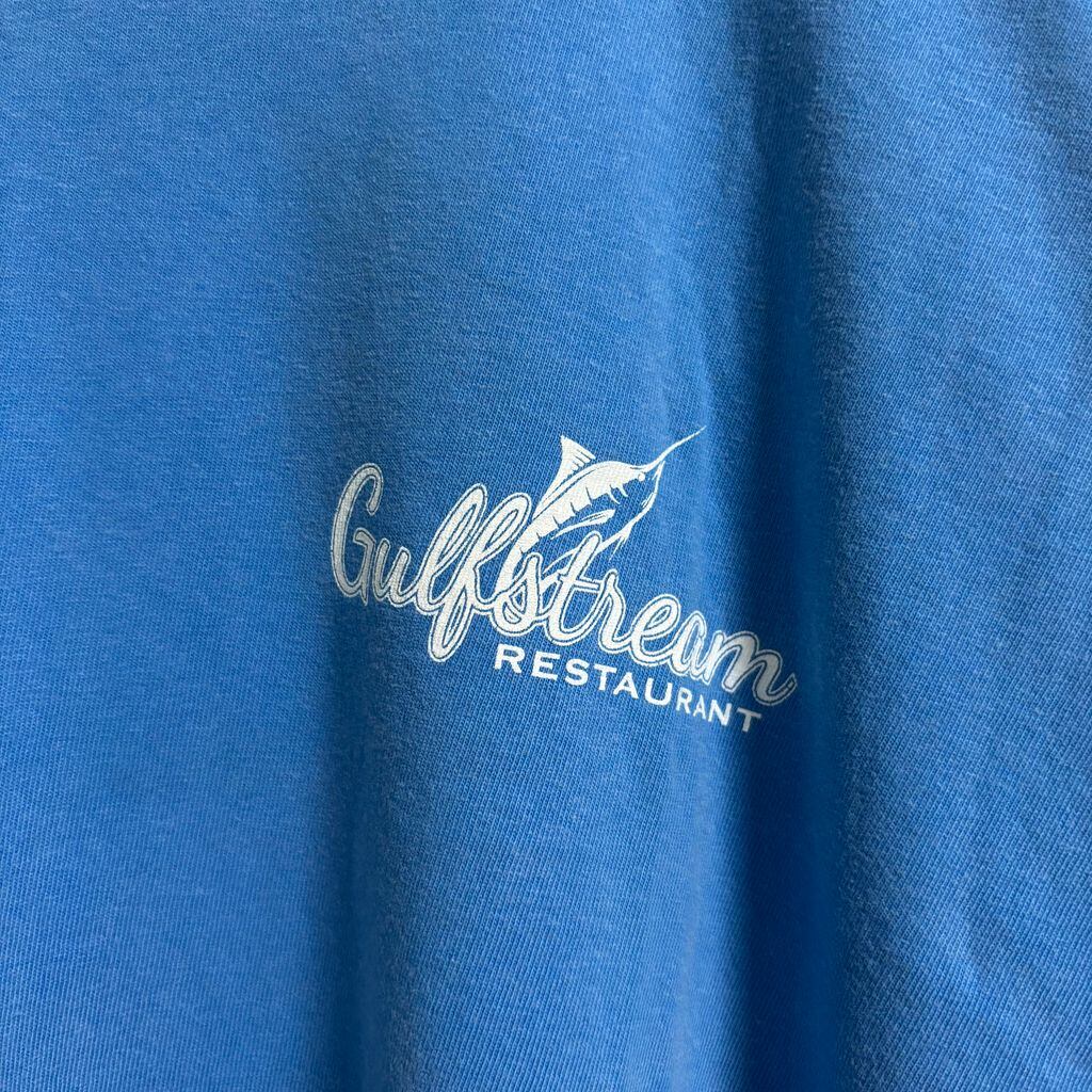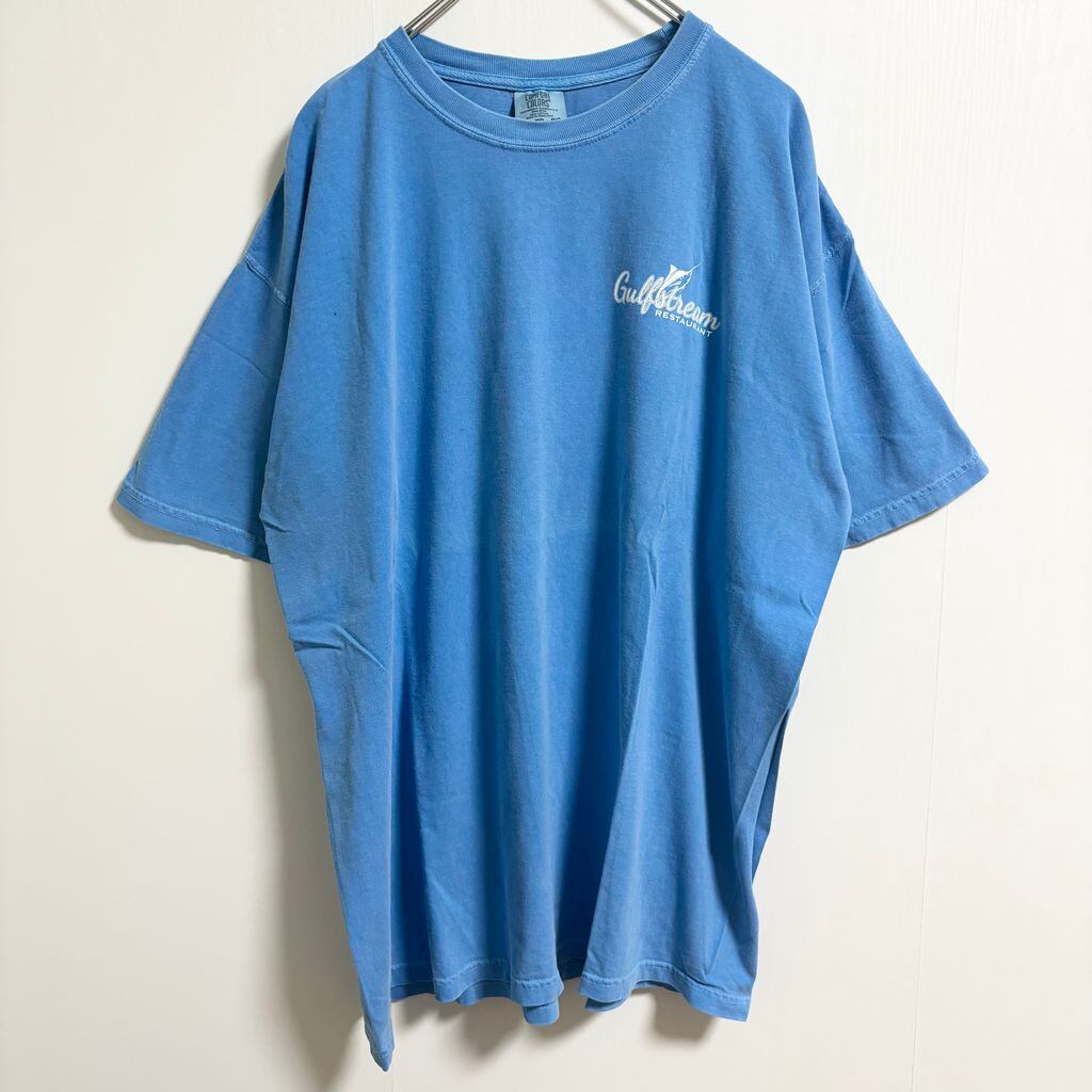 古着 used 半袖ワンポイントTシャツ バックプリント 魚 カジキマグロ くすみブルー 青 クルーネック XLサイズ