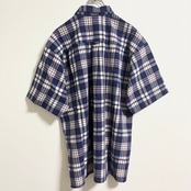 古着 used 半袖チェック柄シャツ レトロデザイン ヴィンテージ ネイビー Lサイズ