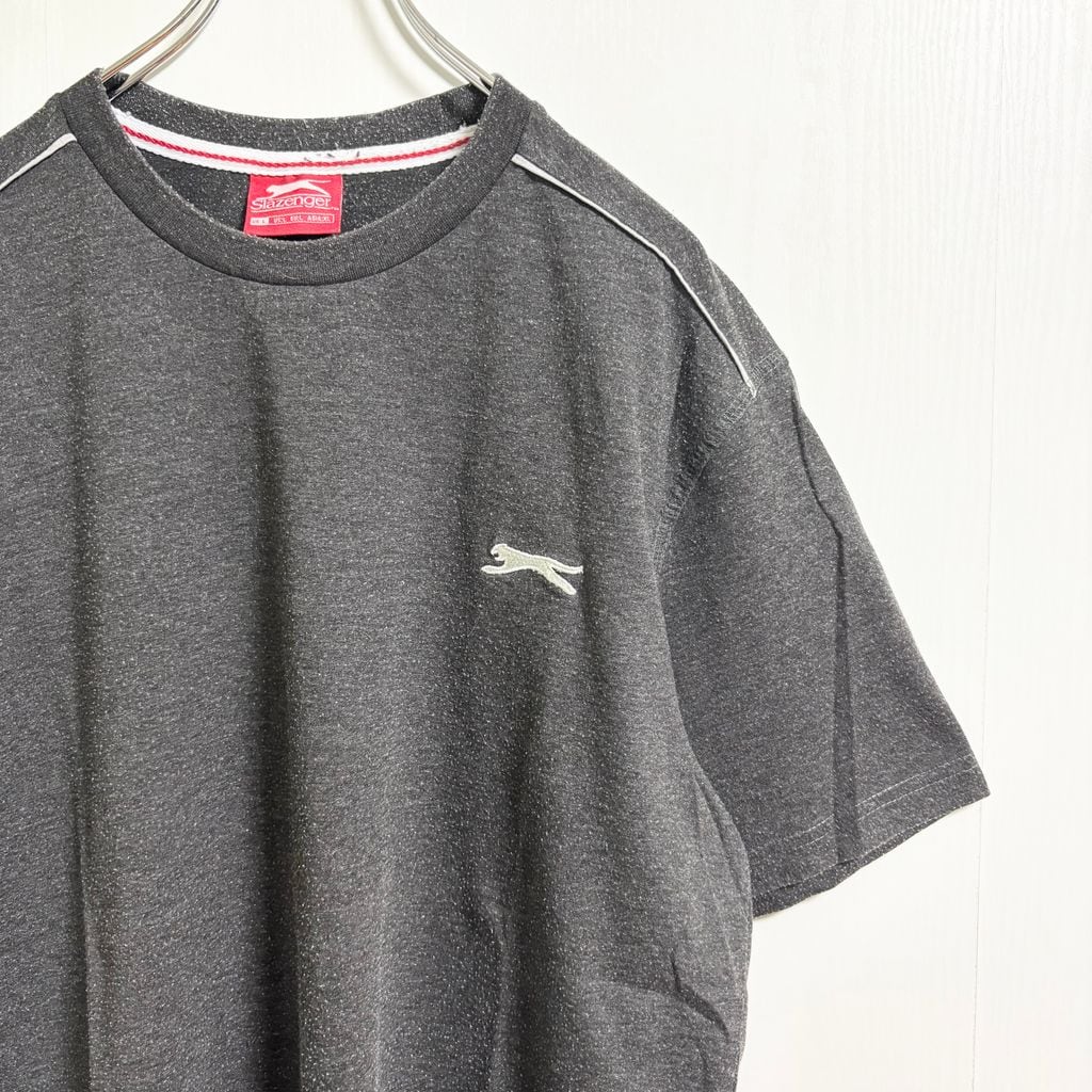 古着 used Slazenger 半袖ワンポイントTシャツ 刺繍 グレー レトロデザイン クルーネック Lサイズ