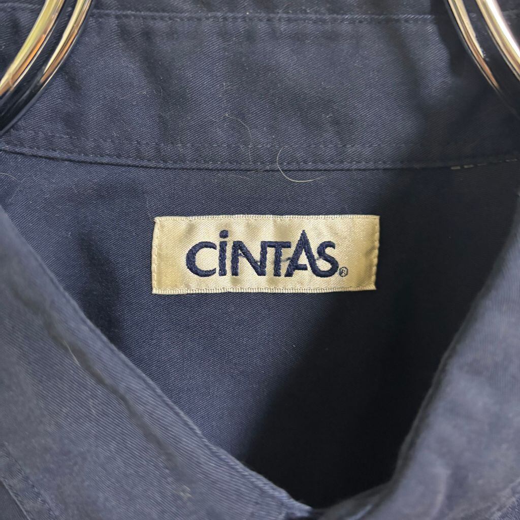 古着 used CiNTAS 半袖ワークシャツ ワンポイント刺繍 ネイビー 紺 レトロデザイン ボタンダウン