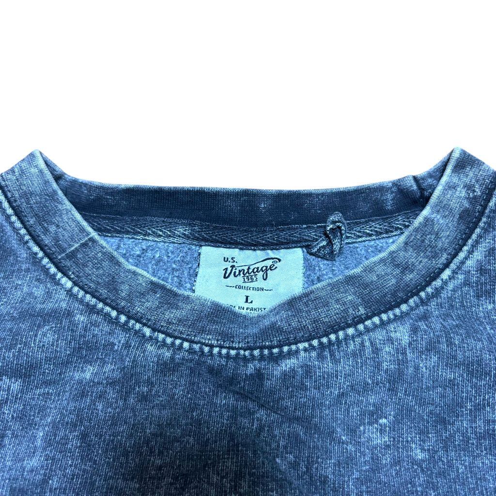 古着 used OUTER BANK 長袖刺繍スウェット トレーナー ウォッシュ加工 レトロデザイン グレー Lサイズ