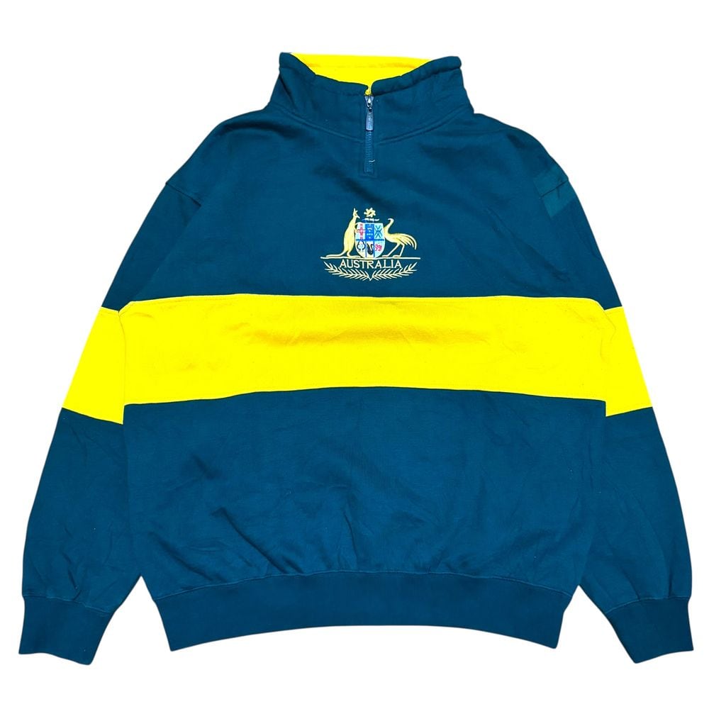 古着 used 長袖ハーフジップスウェット トレーナー 刺繍 緑 グリーン レトロデザイン Mサイズ