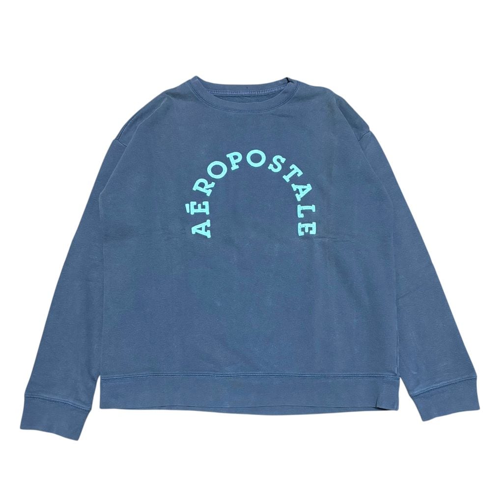 古着 used 長袖刺繍スウェット トレーナー グレー レトロデザイン 文字ロゴ Mサイズ