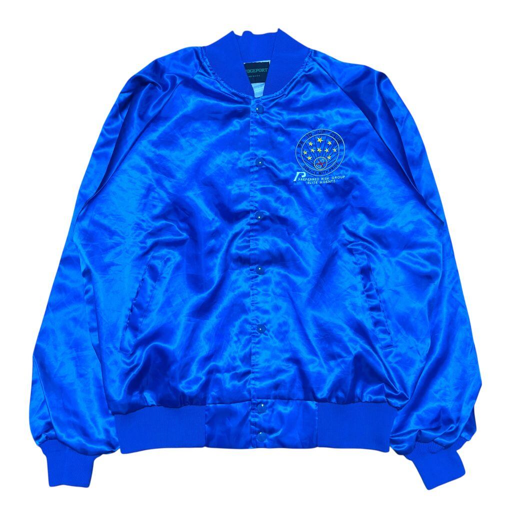 古着 used 80s~90s USA製 長袖サテンスタジャン ナイロンジャケット ワンポイント刺繍 青 ブルー XLサイズ