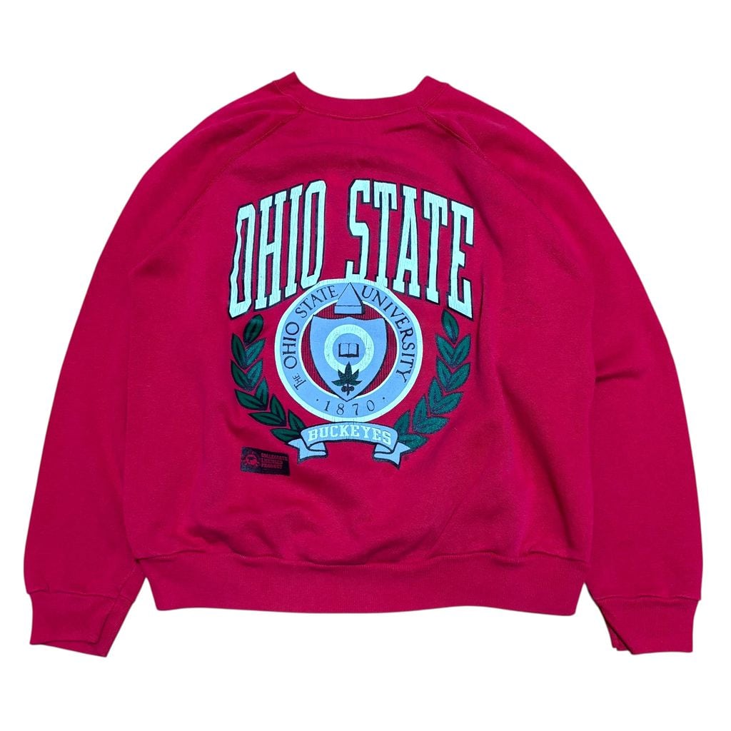 古着 used 90s TULTEX USA製 長袖カレッジプリントスウェット トレーナー ラグラン袖 赤 ヴィンテージ XLサイズ