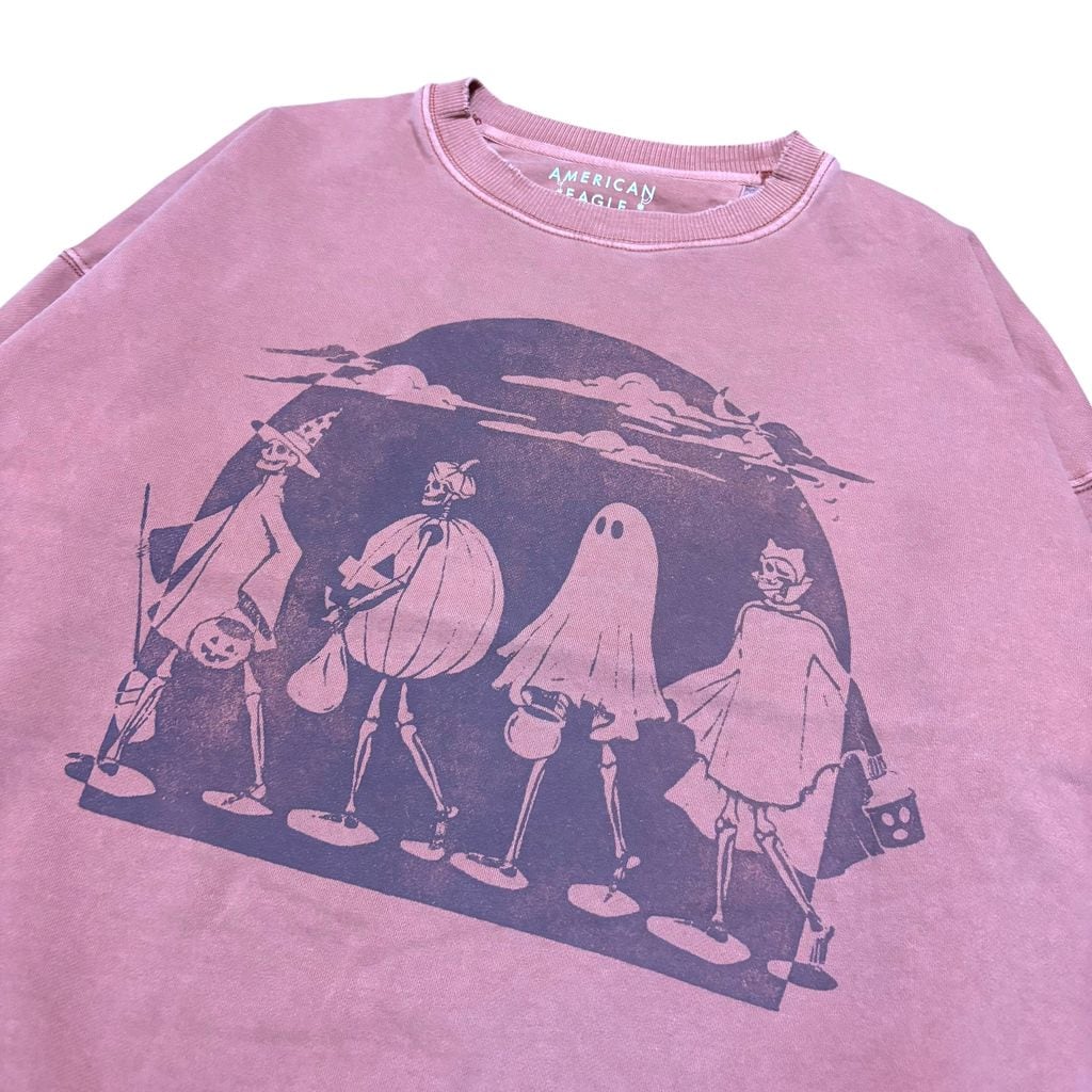 古着 used American eagle アメリカンイーグル 長袖プリントスウェット トレーナー くすみピンク Mサイズ