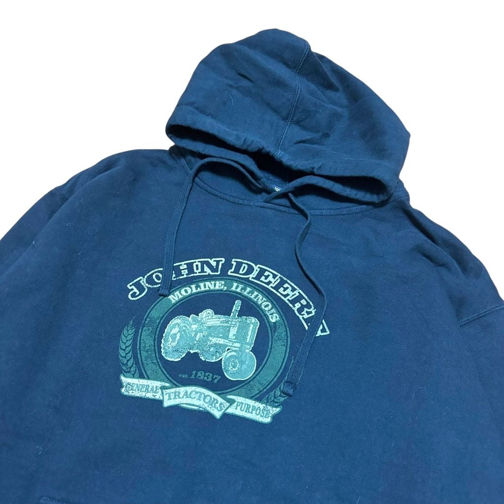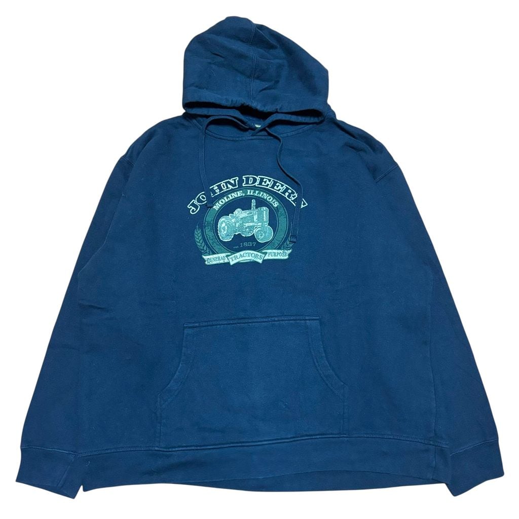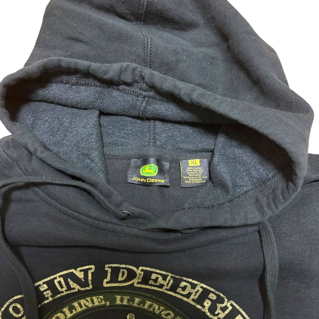 古着 used JOHN DEERE 企業ロゴプリントパーカー フーディー アメカジ 黒 ブラック XLサイズ