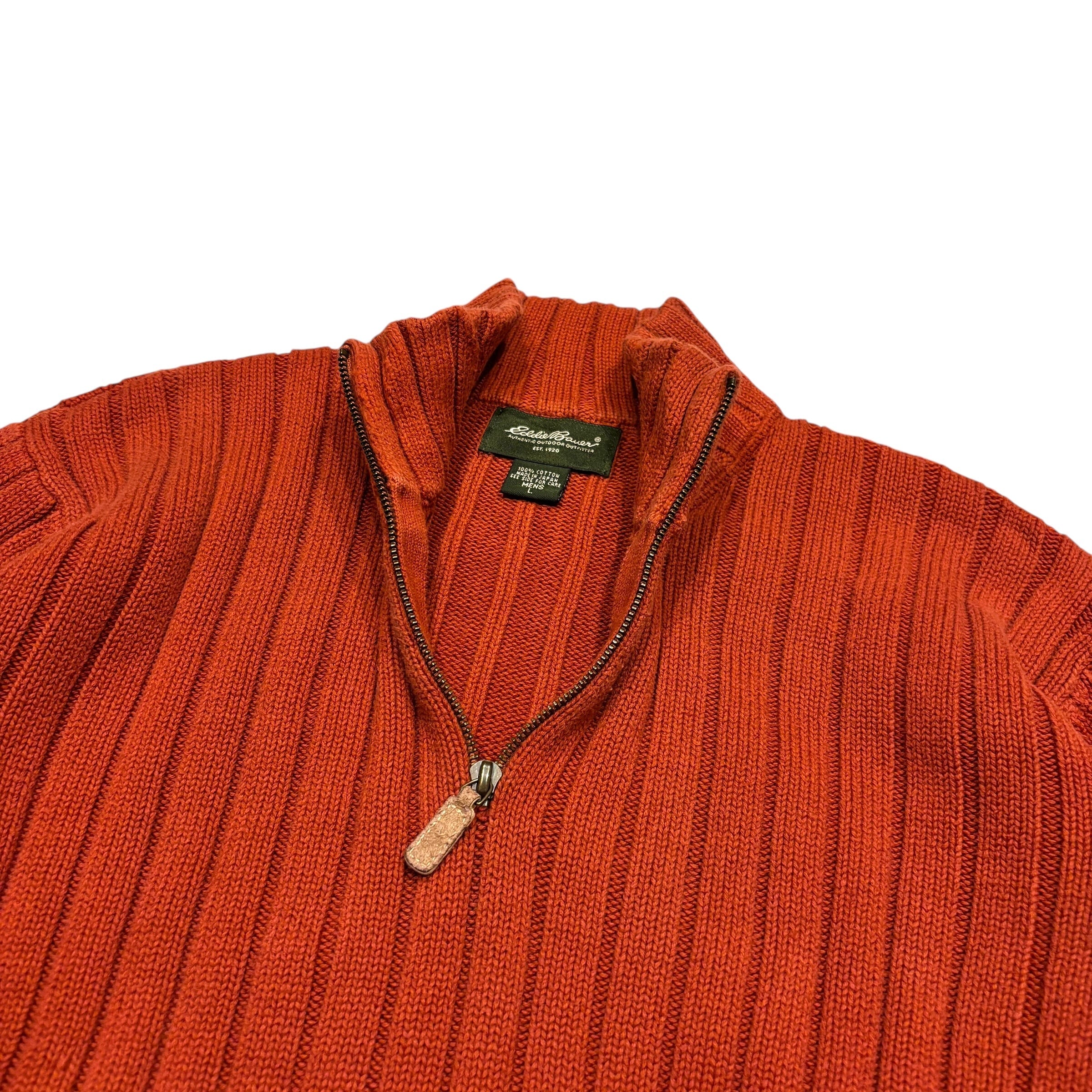 Eddie Bauer エディバウアー ハーフジップコットンニット セーター オレンジ Lサイズ