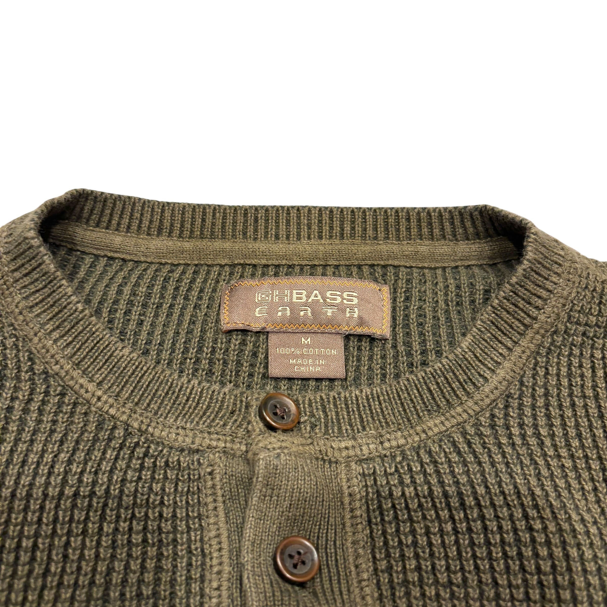 GHBASS EARTH ヘンリーネックコットンニット セーター カーキ Mサイズ