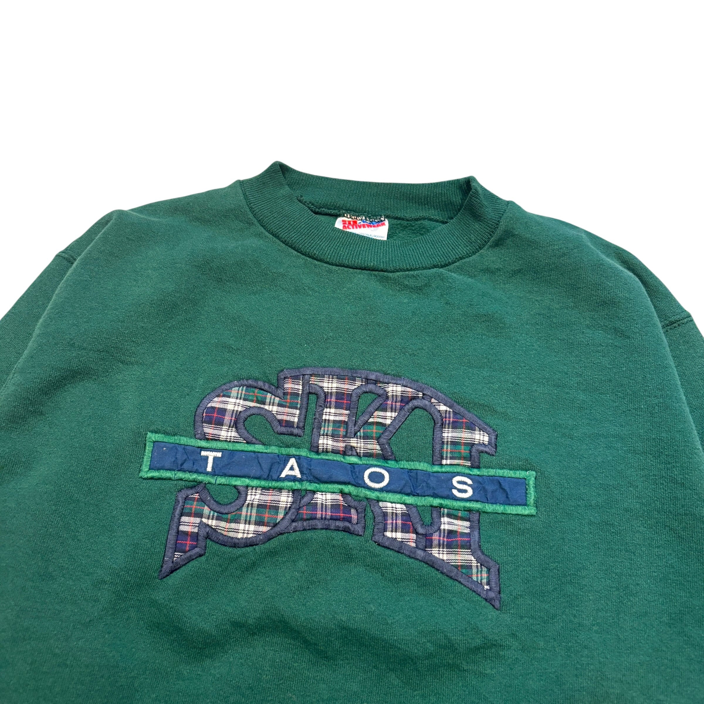 90s〜 Hanes ヘインズ クルーネック刺繍スウェット トレーナー ダークグリーン 深緑 Mサイズ
