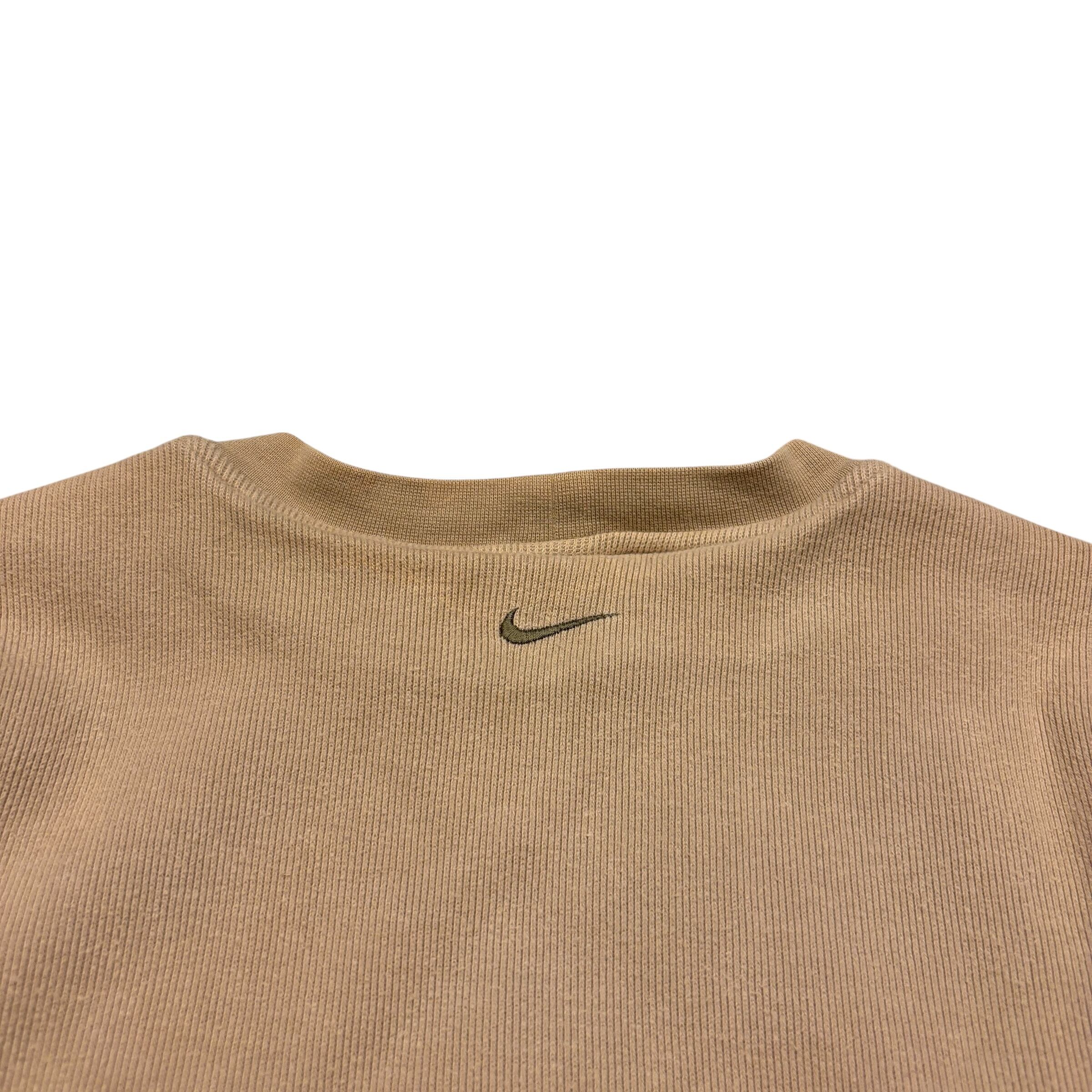 00s〜 NIKE ナイキ ブランドロゴ刺繍ニット セーター スウッシュロゴ ベージュ Lサイズ