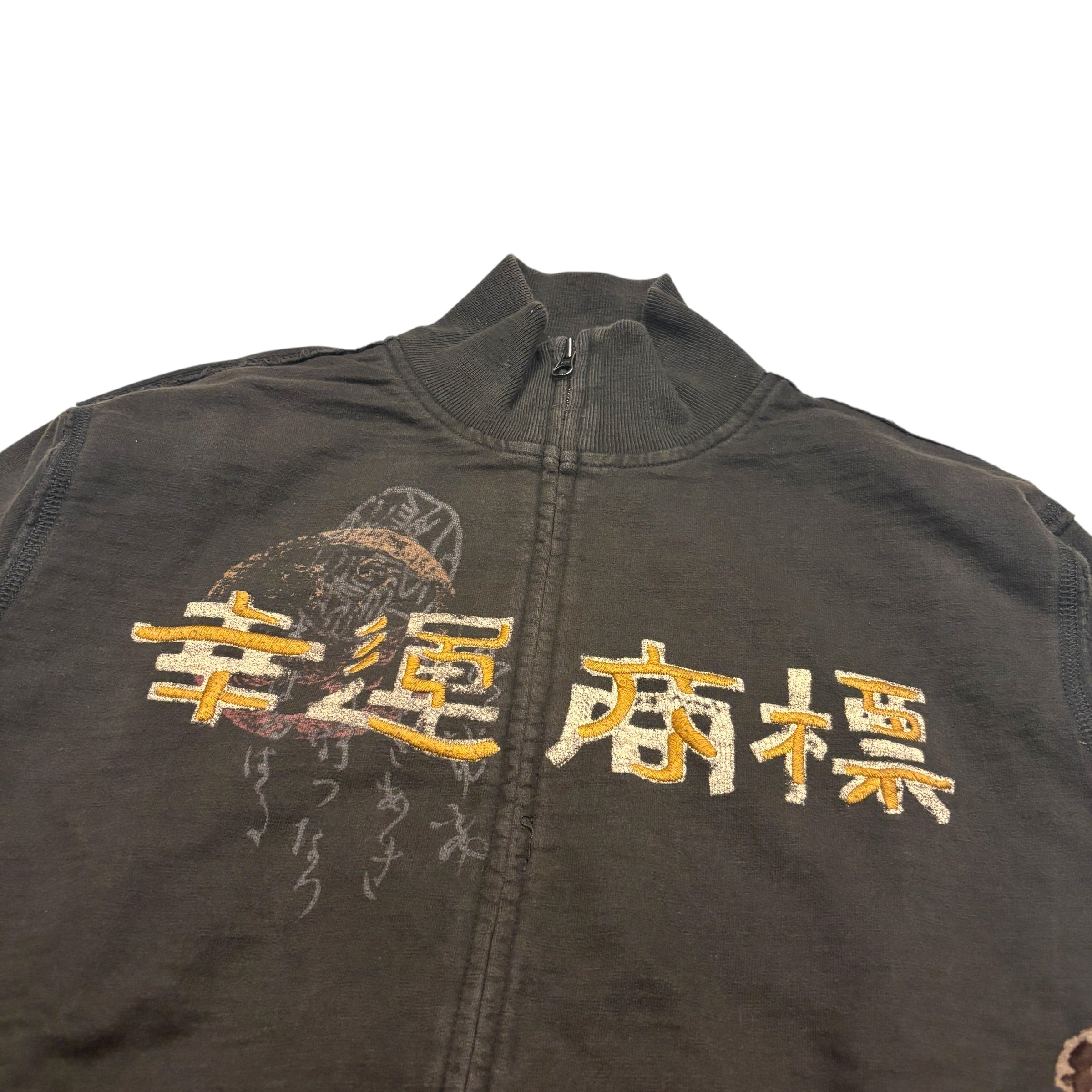 Lucky Brand ラッキーブランド フルジップスウェットジャケット トレーナー アニマル柄刺繍 カーキ XLサイズ