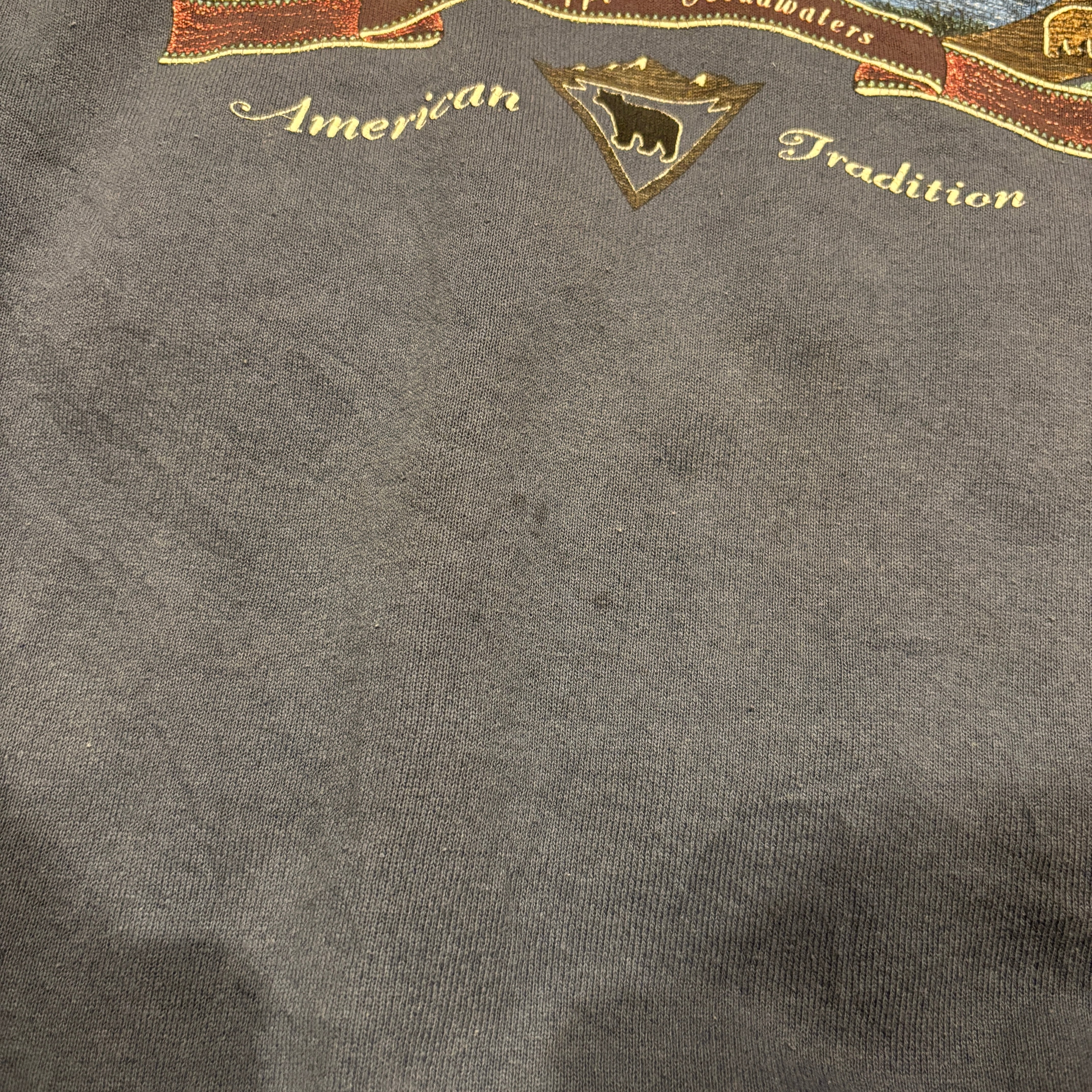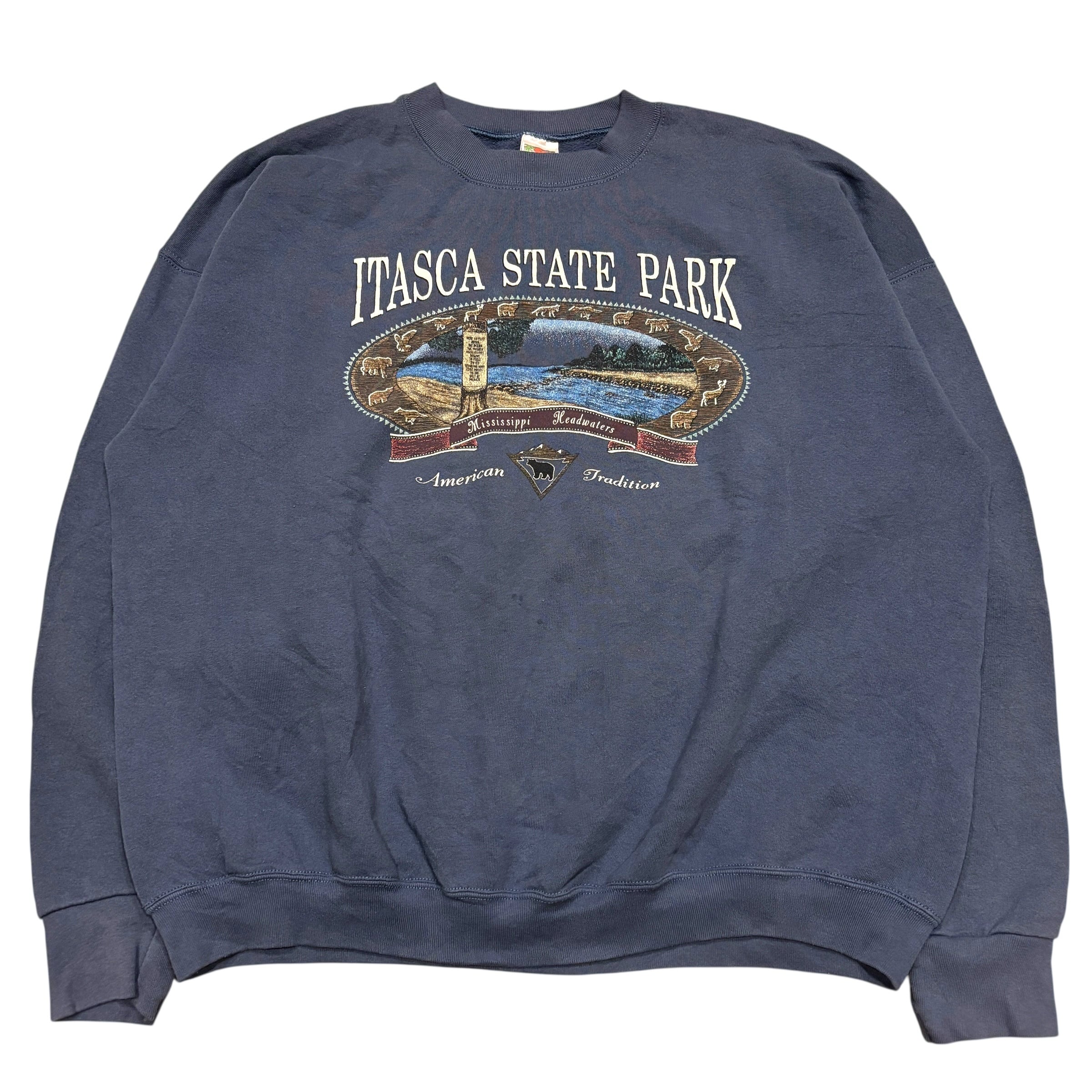 00s〜 メキシコ製 FRUIT OF THE LOOM フルーツオブザルーム プリントスウェット ネイビー 紺 XXLサイズ