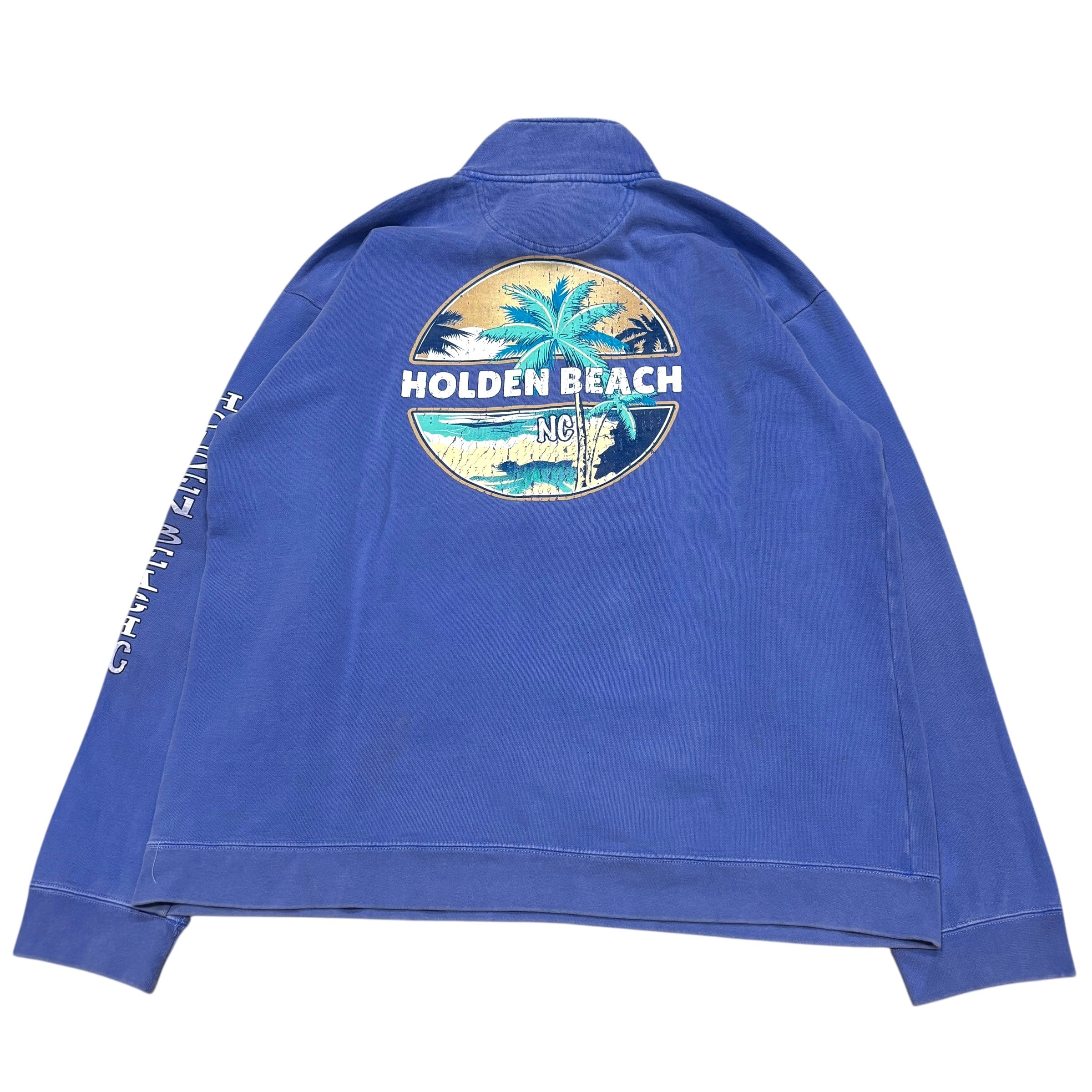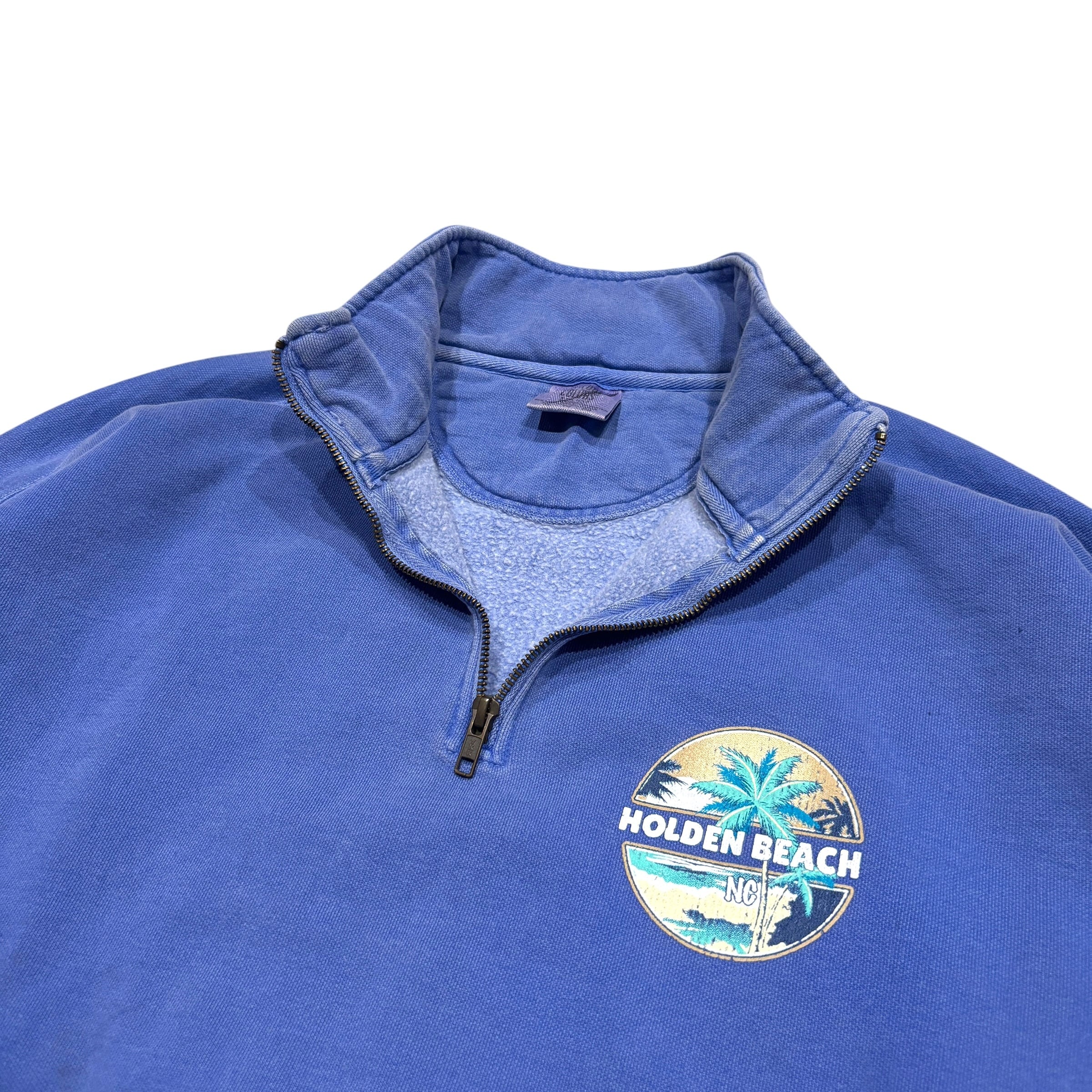 COMFORT COLORS ハーフジップスウェット トレーナー ワンポイント バックプリント くすみブルー 青 XLサイズ