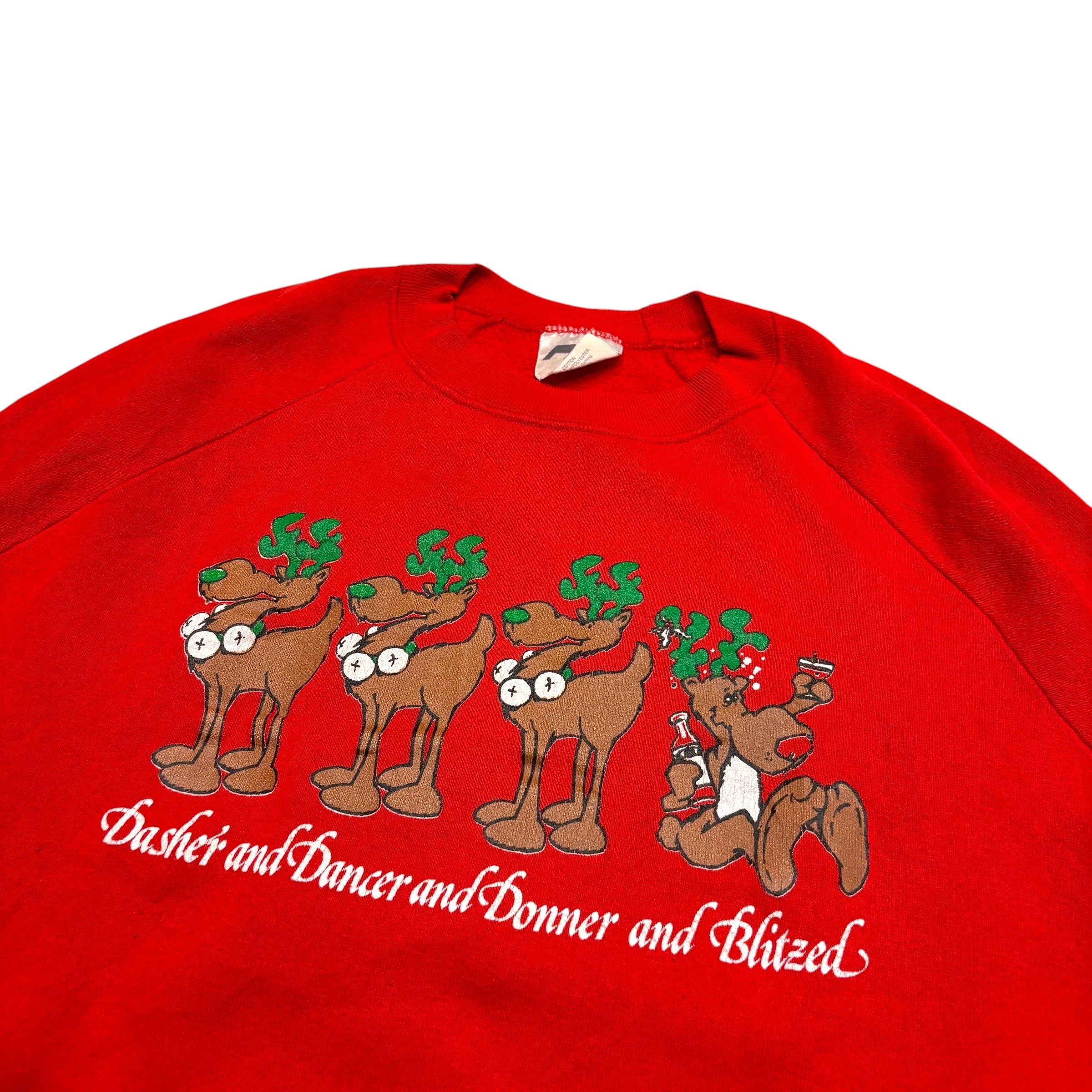 90s〜 USA製 ラグランスウェット トレーナー クリスマスプリント トナカイ 赤 XLサイズ