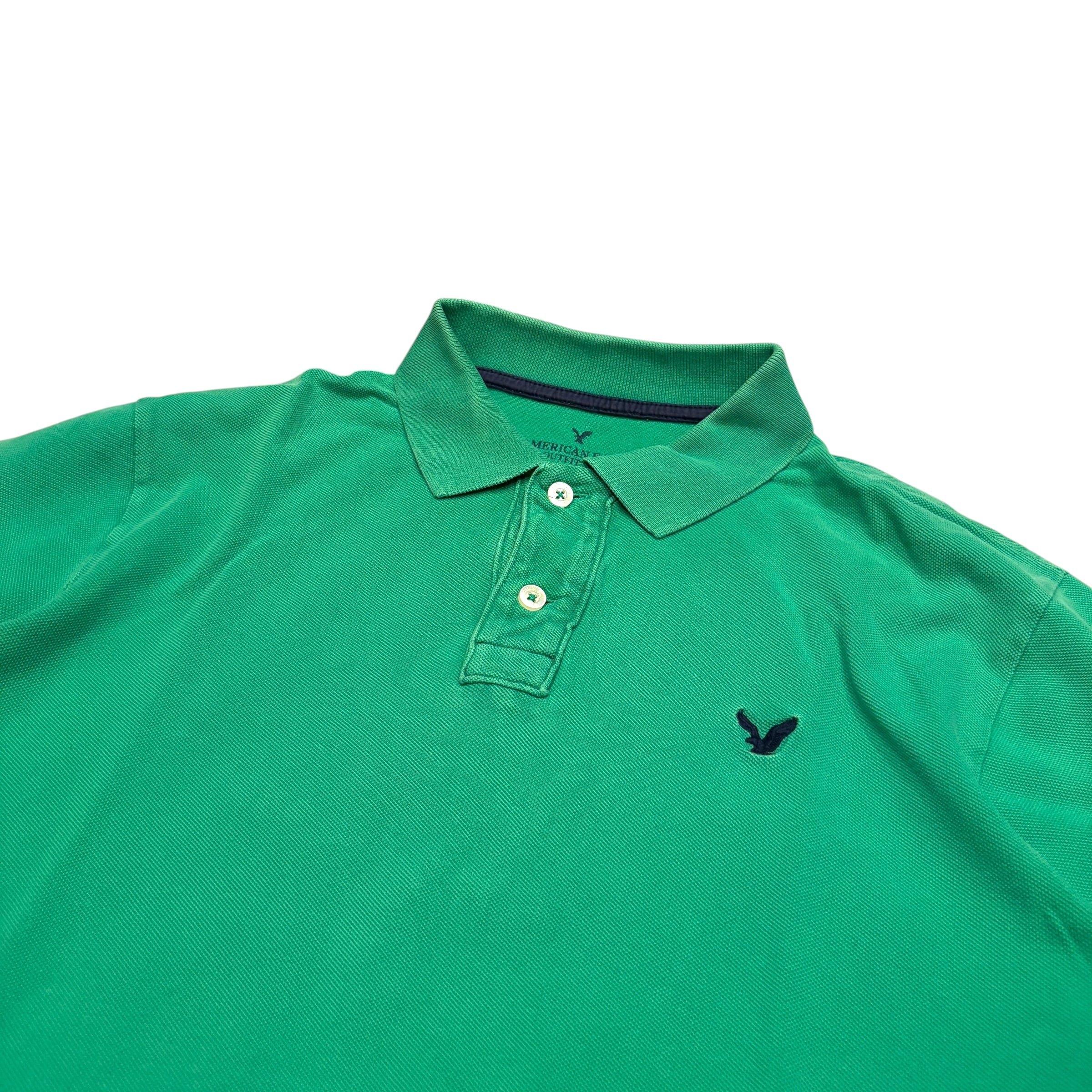 American eagle アメリカンイーグル 半袖ワンポイントロゴ刺繍ポロシャツ 緑 Lサイズ