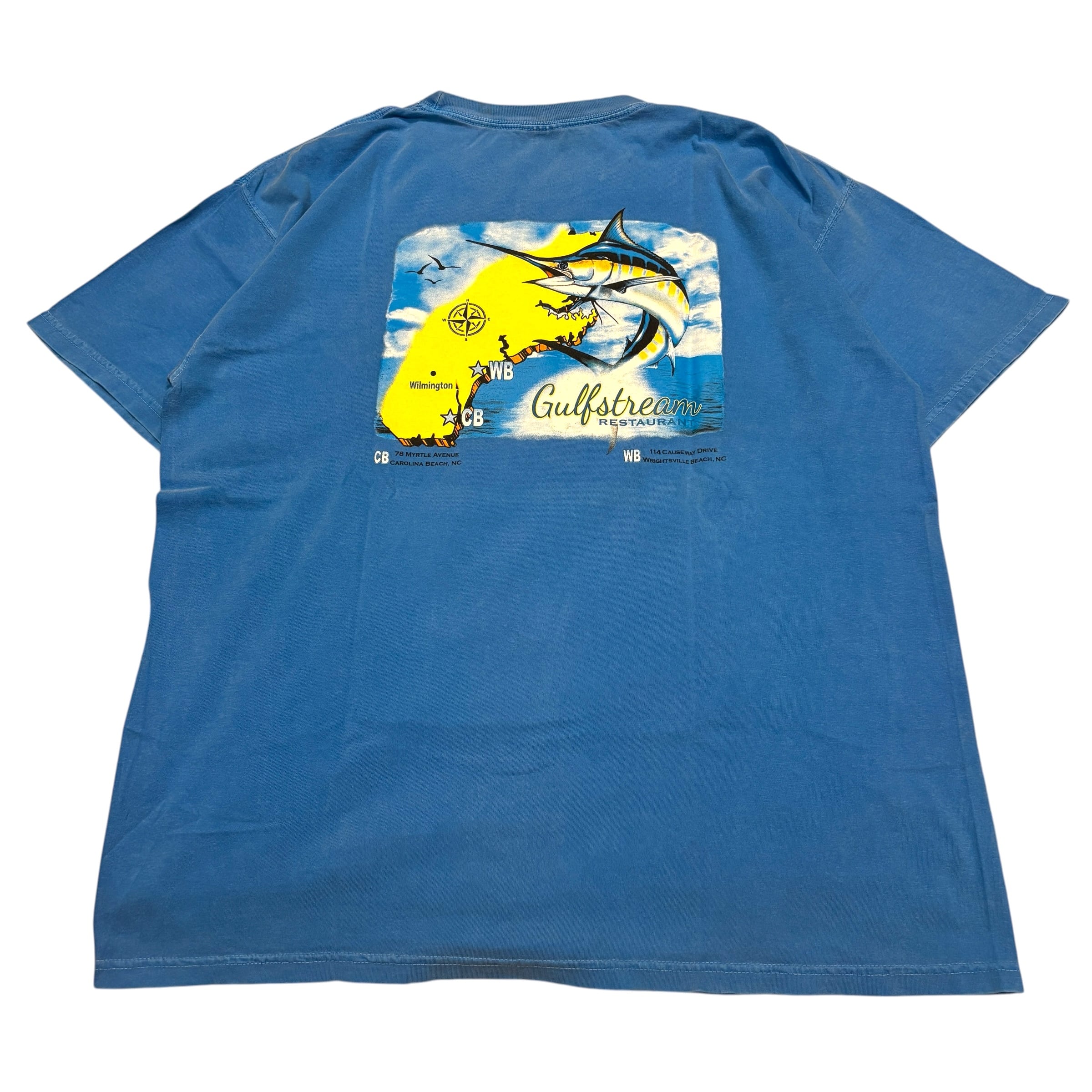 COMFORT COLORS 半袖バックプリントTシャツ ワンポイント 魚 カジキマグロ くすみブルー 青 XLサイズ