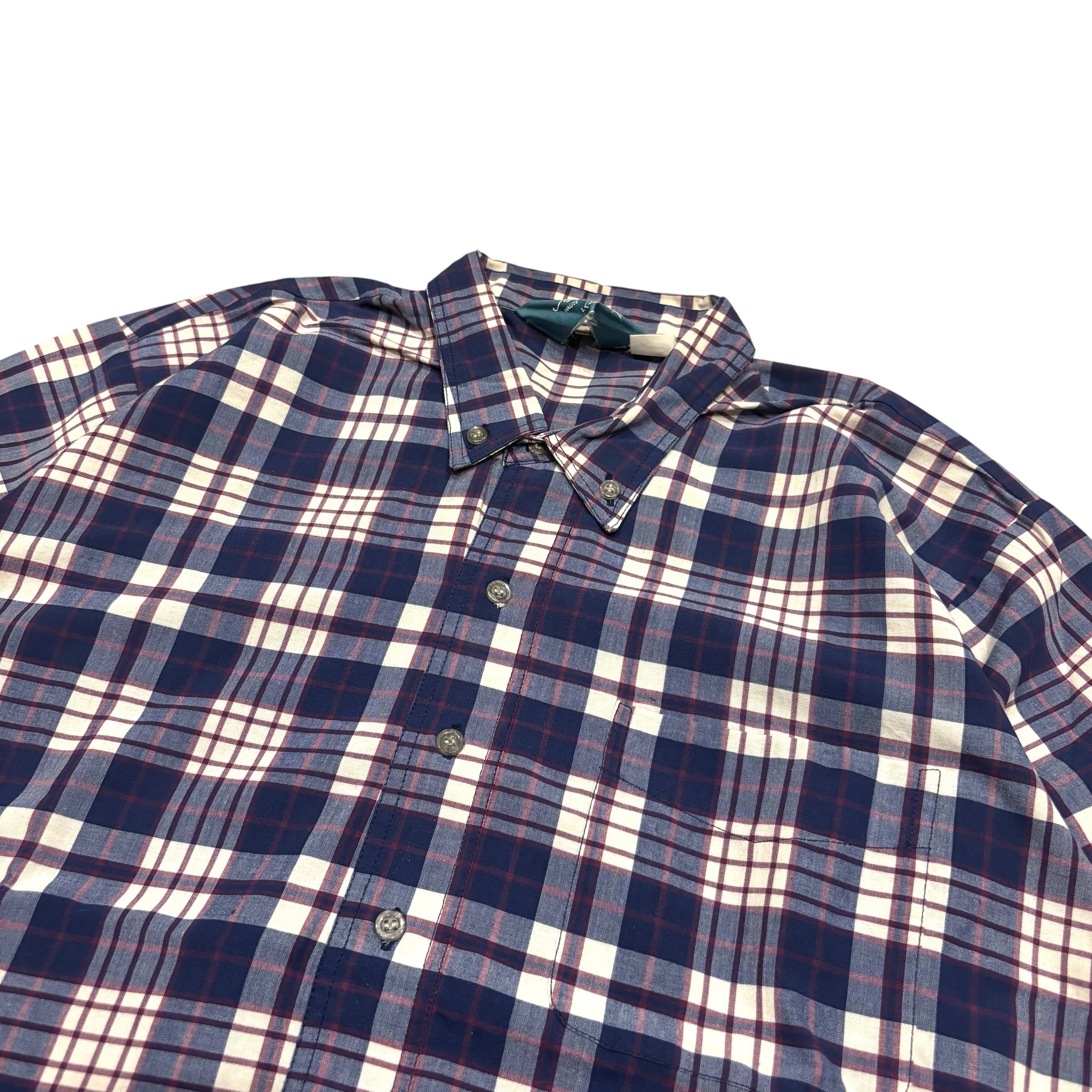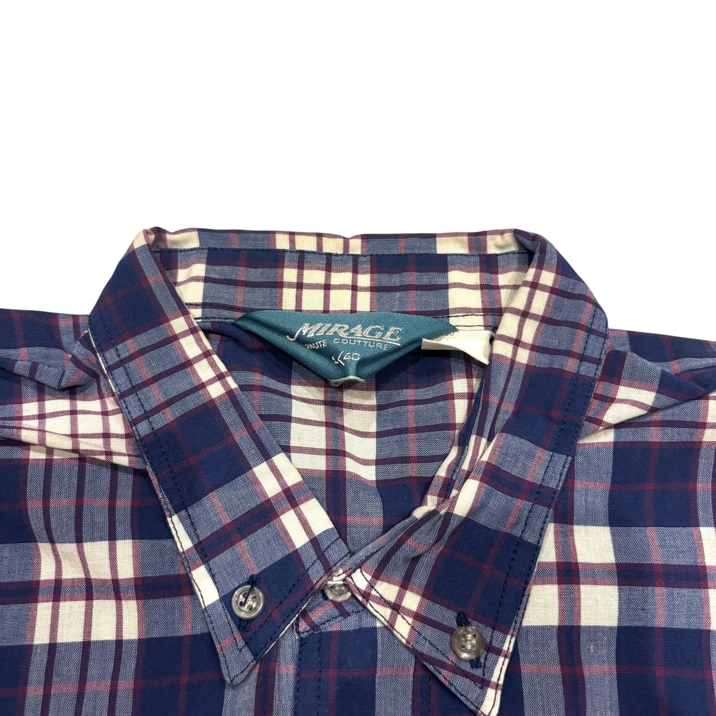 80s〜90s MIRAGE 半袖チェック柄シャツ ヴィンテージ ネイビー Lサイズ