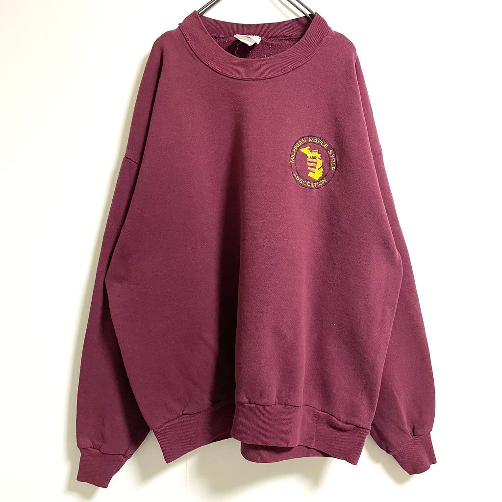 古着 used JERZEES ジャージーズ 長袖ワンポイントロゴ刺スウェット トレーナー ワインレッド えんじ色