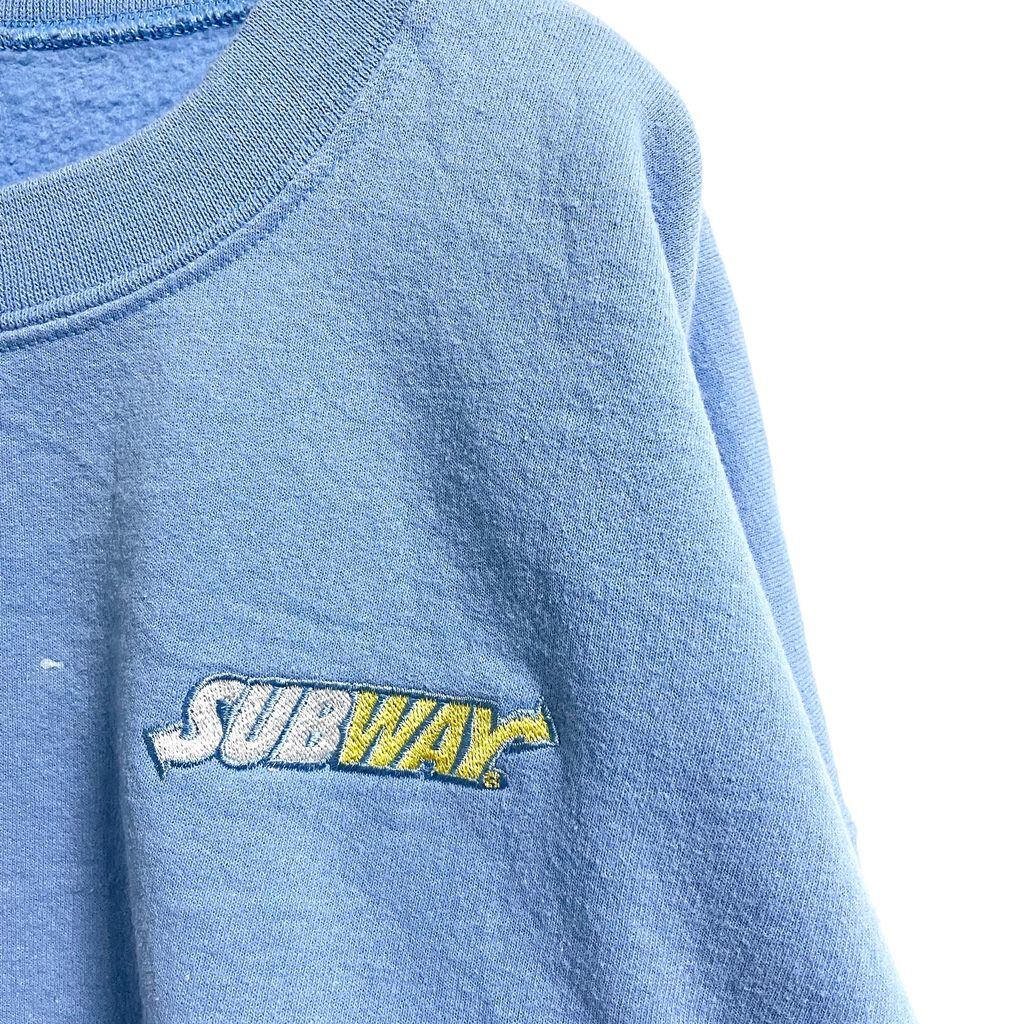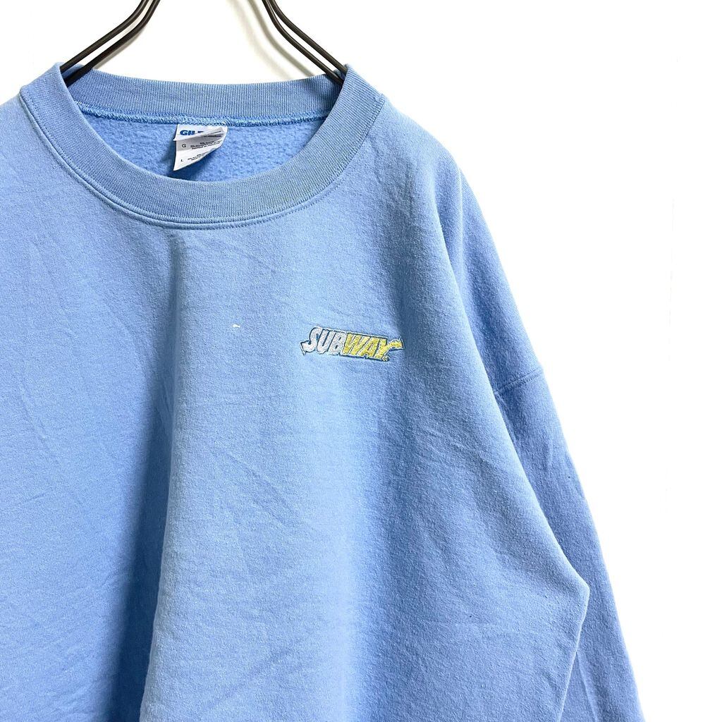 古着 used GILDAN ギルダン SUBWAY サブウェイ 長袖ワンポイントロゴ刺繍スウェット トレーナー 水色 Lサイズ