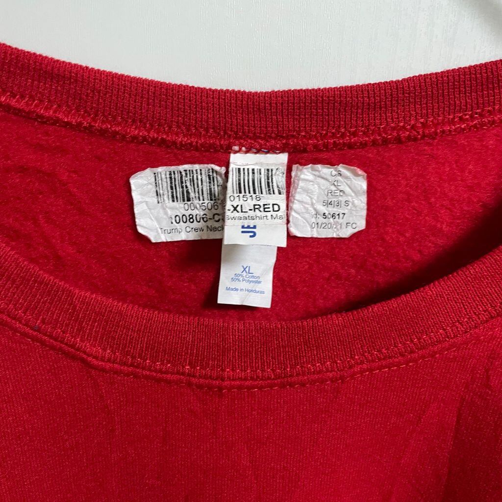 古着 used JERZEES ジャージーズ TRUMP 長袖プリントスウェット トレーナー 赤 ビビッドカラー XLサイズ