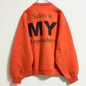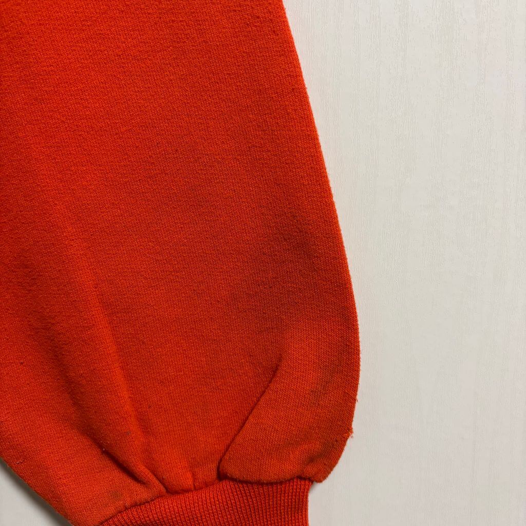 古着 used JERZEES ジャージーズ 長袖ワンポイント刺繍スウェット トレーナー オレンジ ビビッドカラー バックプリント