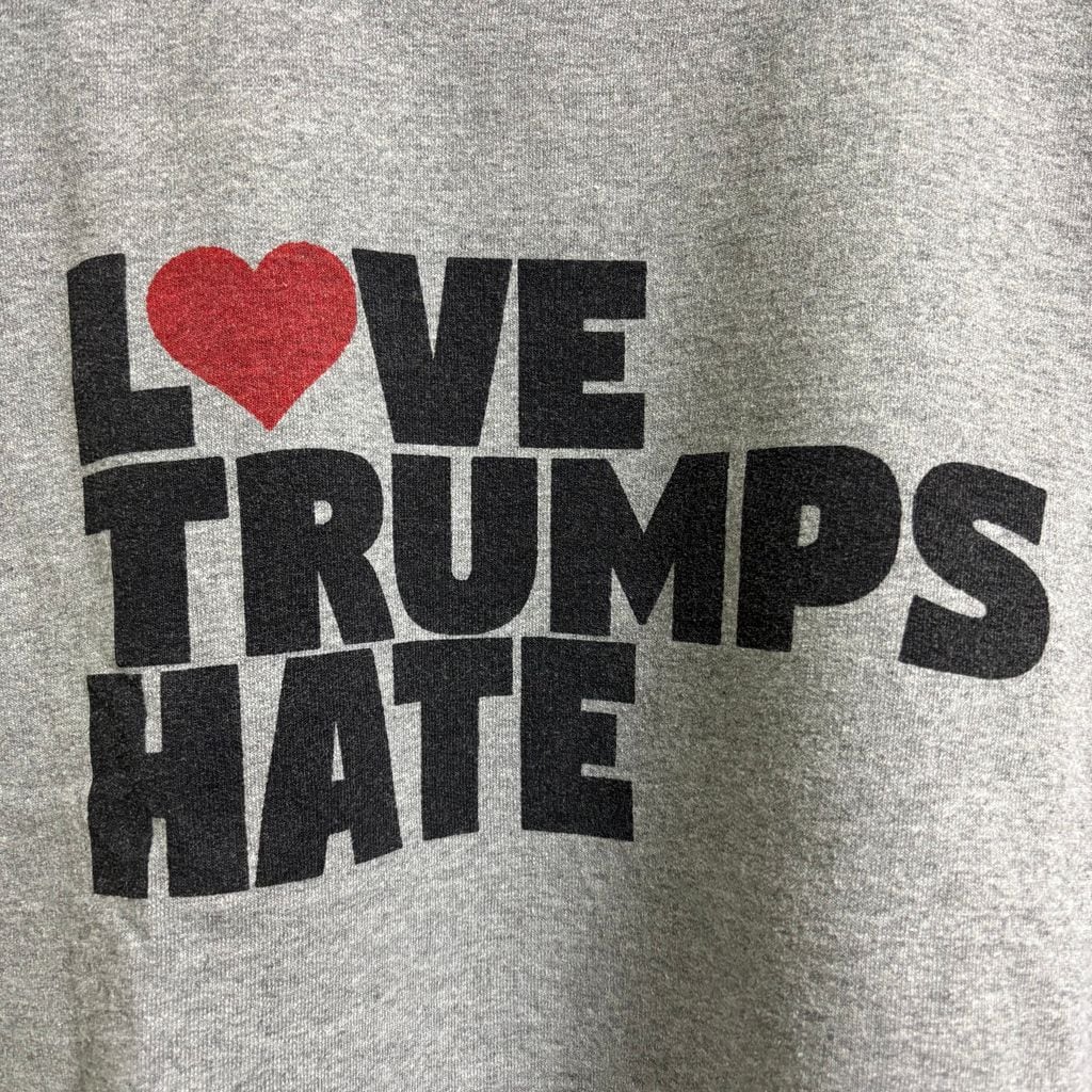 古着 used JERZEEZ ジャージーズ "LOVE TRUMPS HATE" 長袖プリントスウェット トレーナー グレー